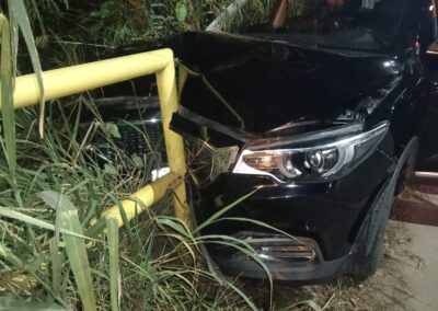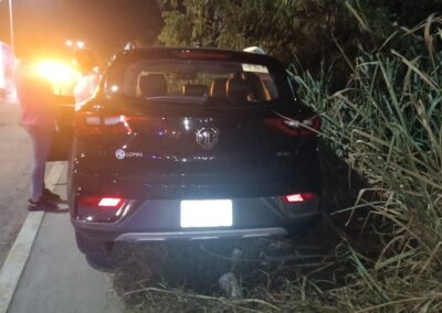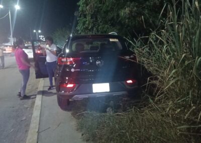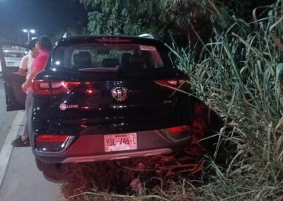 La unidad involucrada era conducida por Karla Gabriela S, de 44 años de edad, con domicilio en el fraccionamiento Cabo Rojo. De acuerdo con la información recabada, la automovilista transitaba por el Juan Lucas Road y, al incorporarse al libramiento, perdió el control del vehículo y se proyectó hacia su derecha, impactándose contra el barandal metálico de contención.