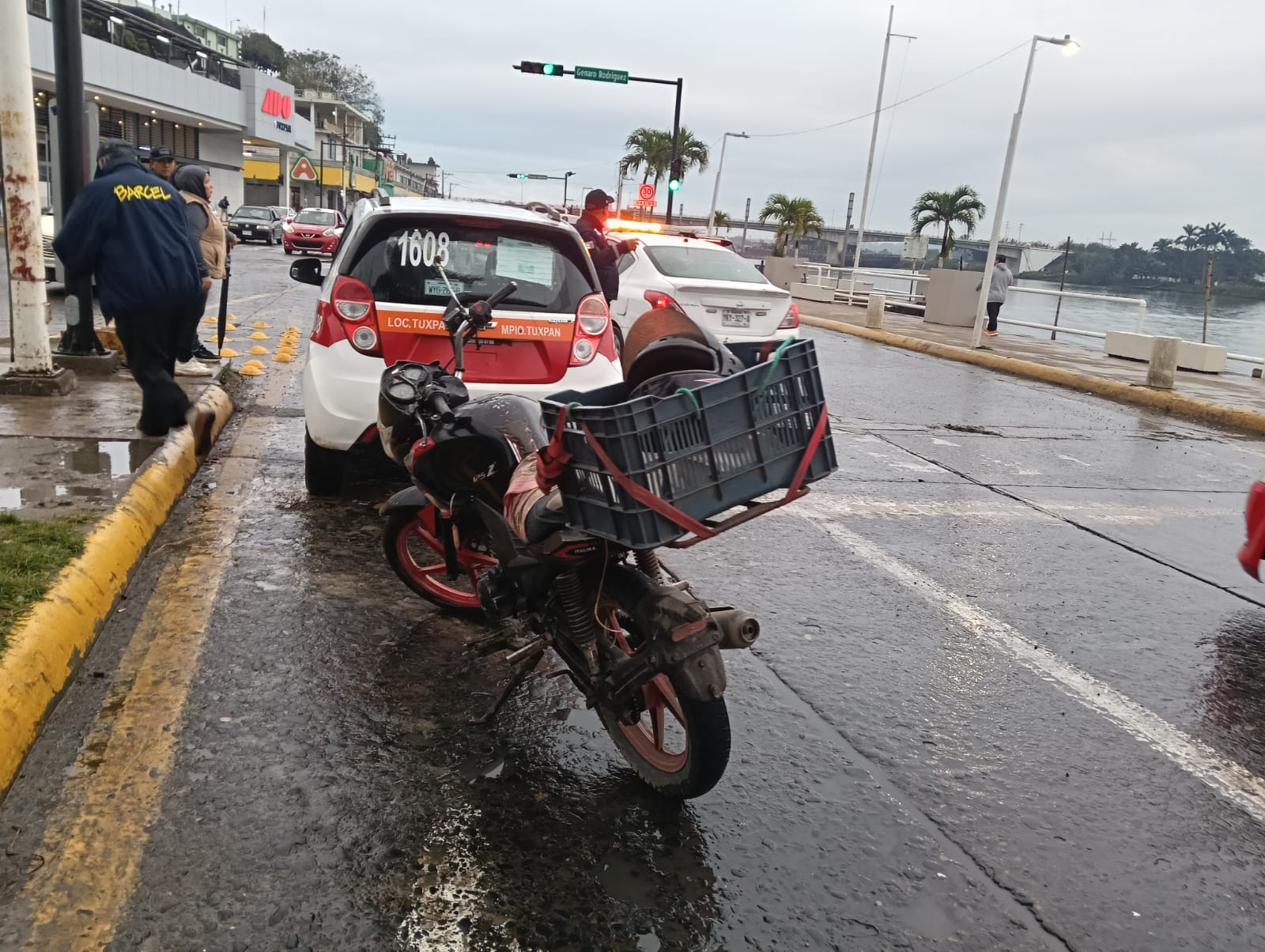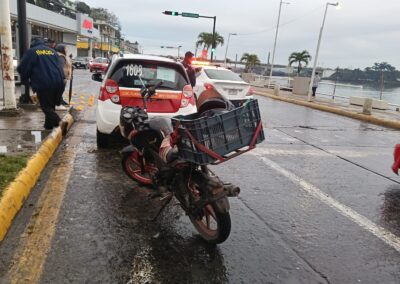 De acuerdo con el reporte oficial, el percance ocurrió alrededor de las siete con treinta y cinco horas, cuando Miguel Ángel «H», de cuarenta y cuatro años, con domicilio en la colonia La Luna, conducía una motocicleta Italika 125Z, color negro, y colisionó por alcance a un automóvil Chevrolet Spark, color blanco con rojo, modelo dos mil trece, Taxi #1608.