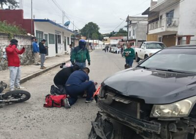 Al iniciar la marcha, su unidad colisionó con una motocicleta marca Vento, tipo doscientos cincuenta, color blanco, placas 47C-69-L, conducida por Sergio Daniel L, de treinta y ocho años, vecino de la colonia San Antonio.