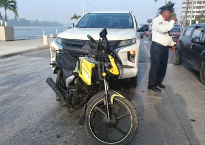 Al circular sobre el bulevar y llegar a la intersección con la calle Morelos, el conductor impactó por alcance a una motocicleta marca Vento tipo Ruder, color negro con amarillo, placas X1V05V del estado, la cual era conducida por Adán «N», de 35 años de edad, vecino de la colonia Vista Hermosa.