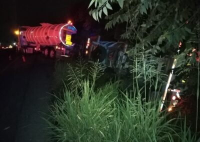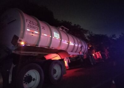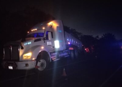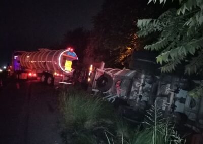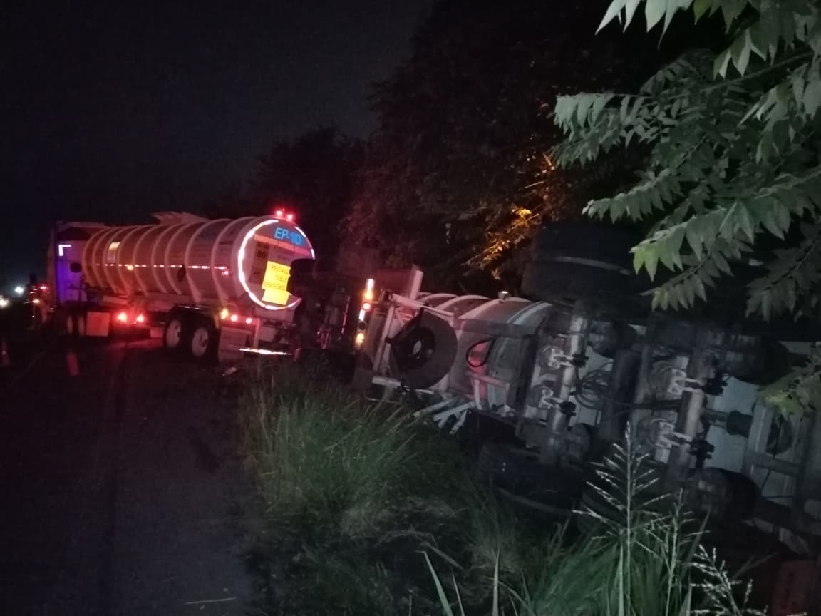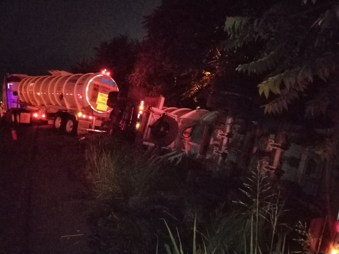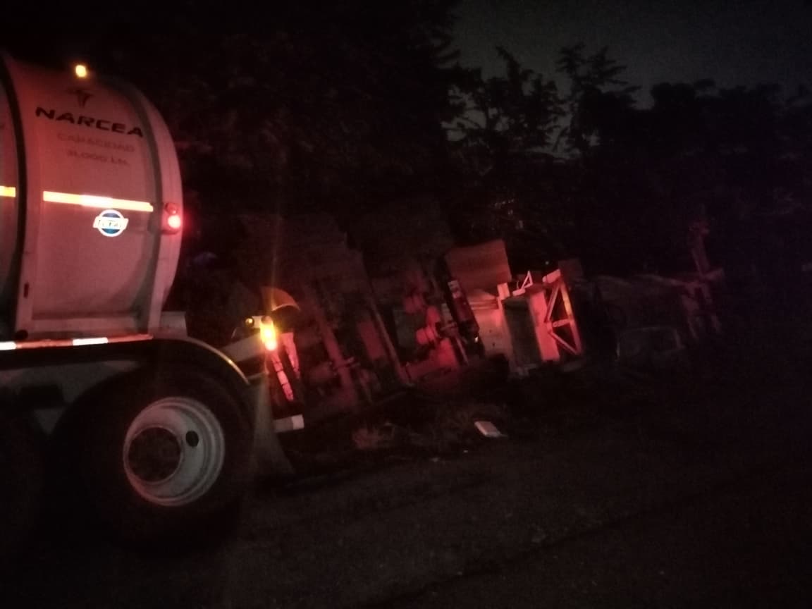 Eran las 05:00 de la madrugada cuando el silencio previo al amanecer fue interrumpido por el estruendo metálico de un tractocamión que terminó volcado en la carretera hacia el recinto portuario, a la altura del ejido La Victoria, aproximadamente a un kilómetro del Parque Industrial Litoral del Golfo.