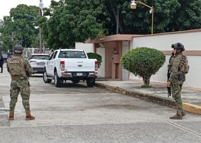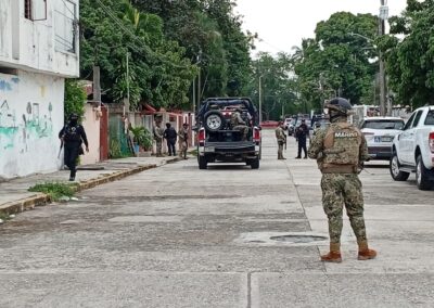 En el operativo participaron elementos de la Secretaría de Marina, Ejército Mexicano, Policía Estatal, Policía Ministerial y Policía Municipal, quienes descendieron de las unidades para realizar recorridos a pie, así como revisiones visuales a vehículos estacionados en la vía pública.
