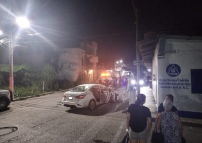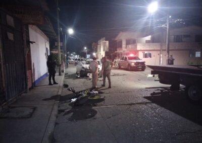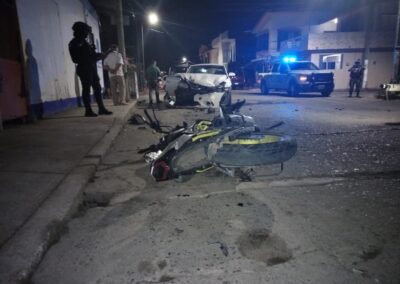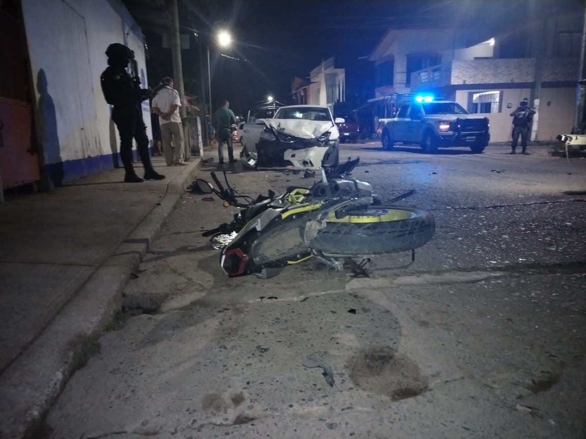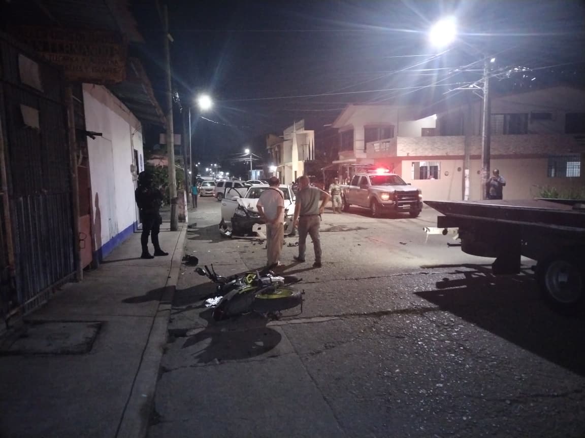 El accidente ocurrió aproximadamente a las 20:15 horas, en la intersección de José Ma. Pino Suárez y Zózimo Pérez Castañeda, donde una motocicleta terminó impactándose contra un vehículo particular.