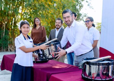 - Con la donación de 7 cornetas y 6 tambores, se refuerza la banda de guerra como un impulso a la disciplina, los valores y el trabajo en equipo de las y los estudiantes