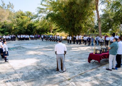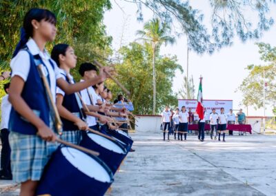 Como parte del programa, se rindieron honores a la bandera a cargo de la banda de guerra de la Escuela Secundaria Manuel C. Tello; posteriormente se realizó la entrega de los instrumentos y la firma del acta responsiva con las autoridades correspondientes.