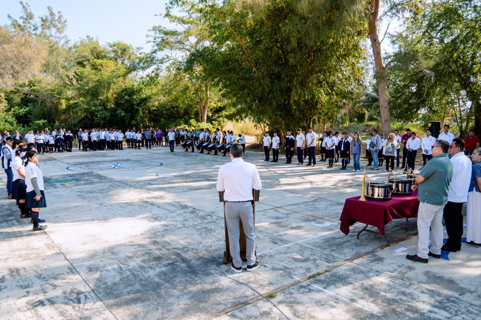 “Que cada ensayo sea una muestra de su disciplina; cada presentación, reflejo de su esfuerzo; y que cada toque les recuerde que el carácter se forja con constancia. Aprovechen esta herramienta. Hagan que esta banda sea orgullo de su escuela y de Tuxpan. Nuestro municipio necesita jóvenes firmes, responsables y comprometidos, y hoy tienen la oportunidad de demostrarlo”, puntualizó.