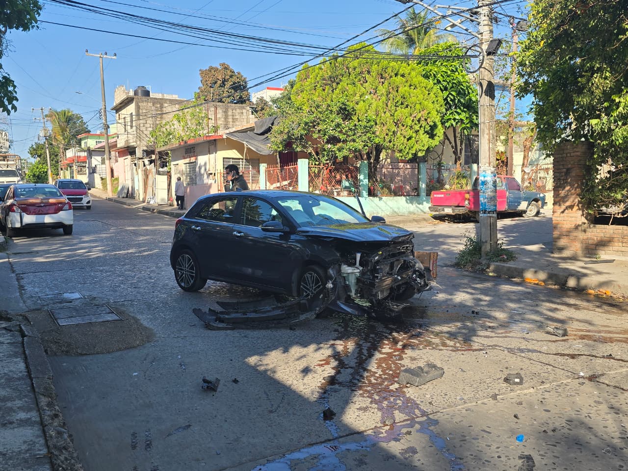Testigos y evidencias en el lugar señalan que el conductor del Kia descendía la pendiente de la calle Matamoros a una velocidad completamente desquiciada, impactándose de lleno contra el Sentra que circulaba correctamente por la vía preferencial. Tras el choque, el vehículo afectado avanzó cerca de treinta metros sin control, debido a que las llantas delanteras quedaron fuera de su eje, subiéndose a banquetas y provocando daños adicionales.
