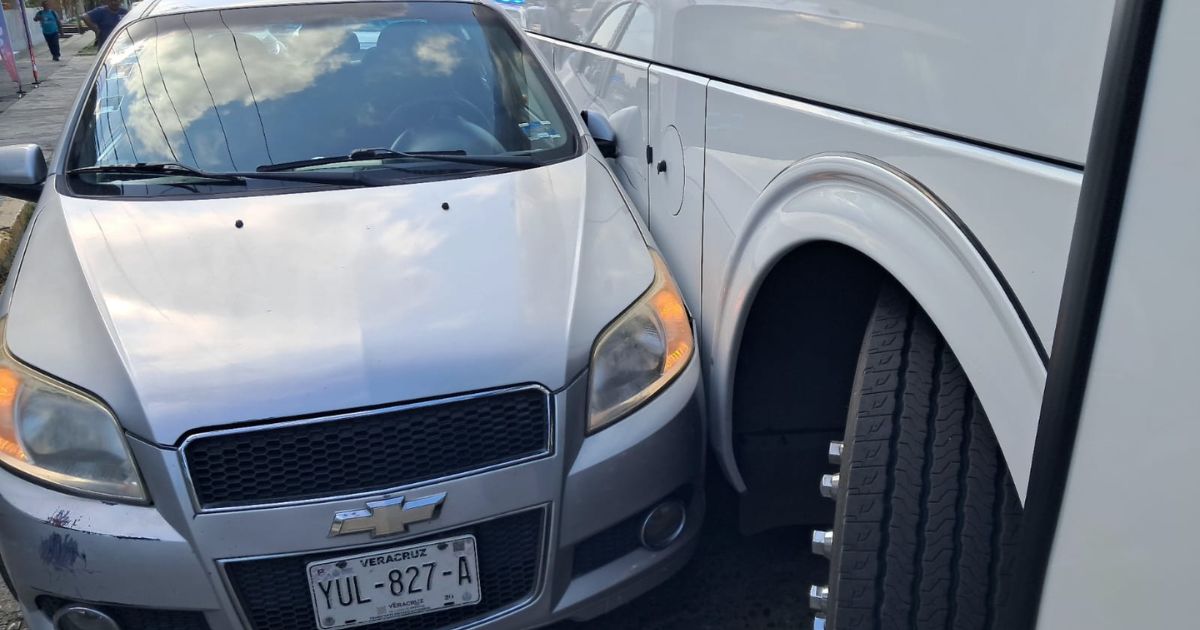 La acción provocó que colisionara contra un automóvil Chevrolet Aveo, color gris, modelo dos mil doce, con placas del estado de Veracruz, el cual circulaba correctamente por la vía.