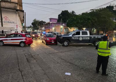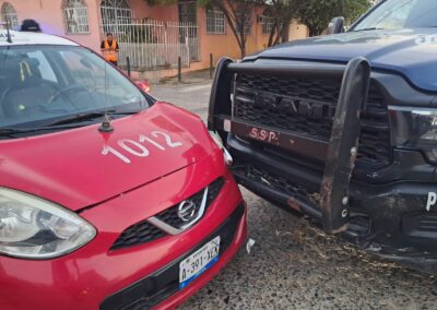 Tras el choque inicial, la fuerza del impacto ocasionó que la patrulla fuera proyectada hacia un segundo taxi, el económico 1012, también Nissan March blanco con rojo, modelo 2019, con placas A391XEK, conducido por Gabriel «C», de 49 años, vecino del fraccionamiento Campo Real.