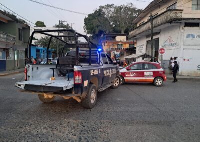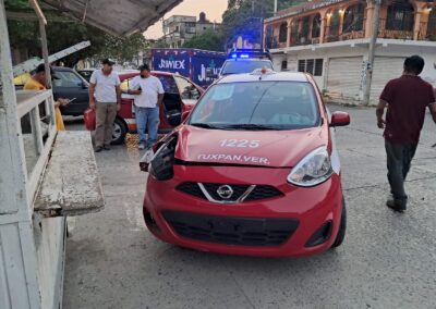 Al invadir la vía con preferencia, la unidad provocó ser colisionada por el taxi económico 1225, un Nissan March color blanco con rojo, modelo 2019, sin placas de circulación, conducido por el ciudadano Noé «G», de 61 años, con domicilio en la colonia Miguel Alemán.