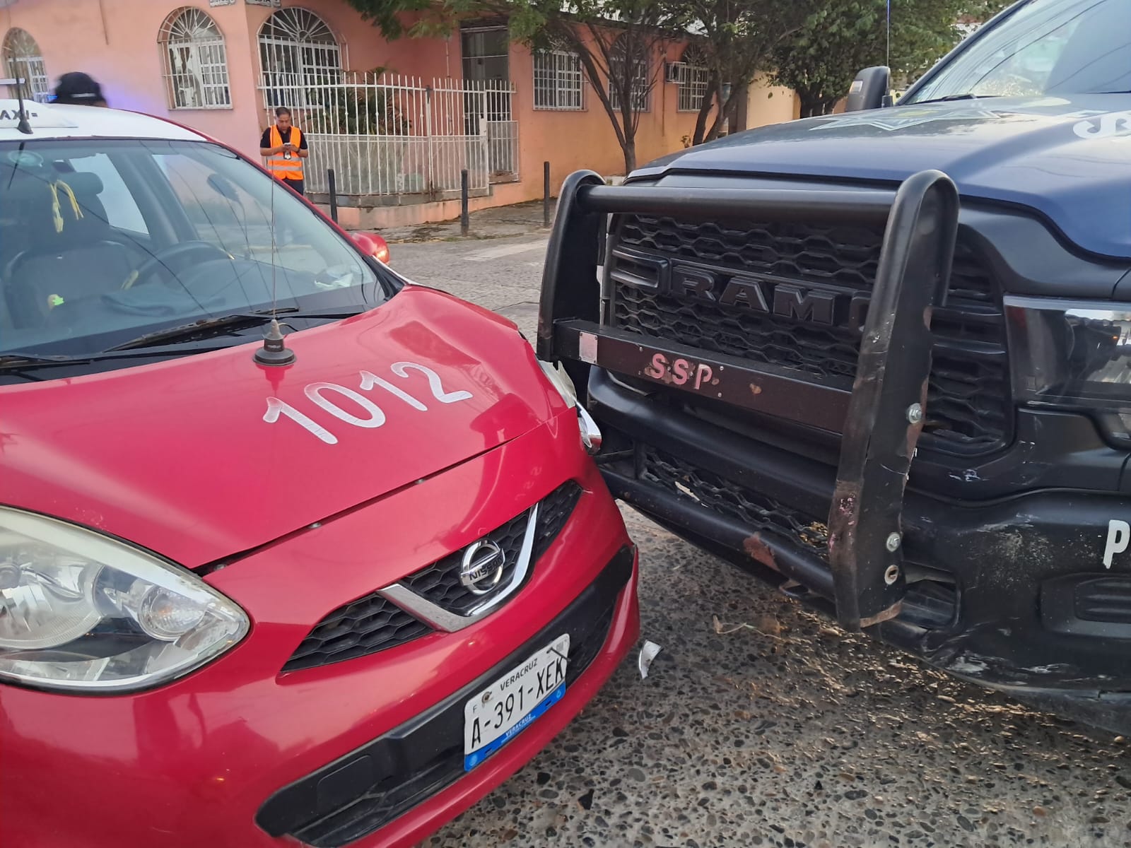 Un hecho de tránsito se registró la tarde de este miércoles, alrededor de las 18:00 horas, en el cruce de la avenida Cuitláhuac con la calle Arista, en la colonia Escudero, donde una patrulla de la Policía Estatal colisionó con un taxi, y tras el impacto fue proyectada contra una segunda unidad de alquiler.