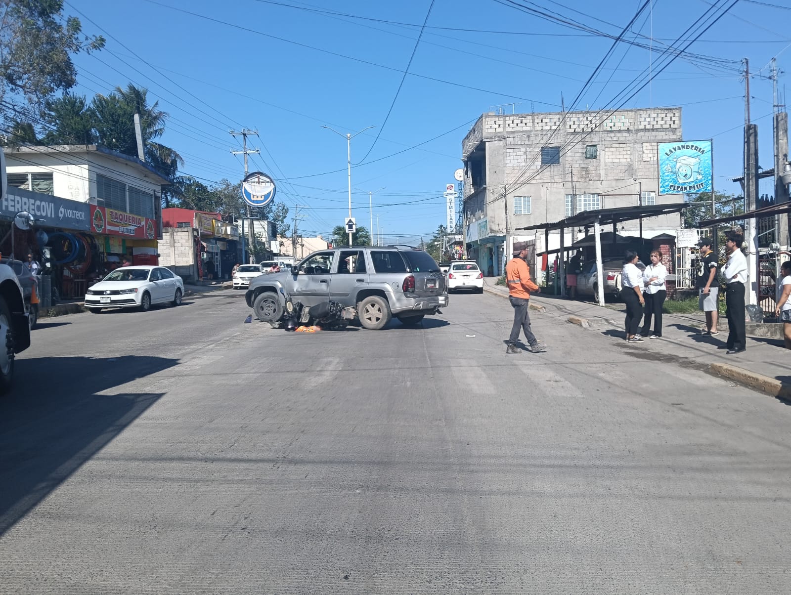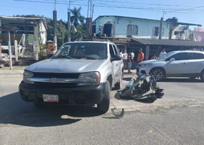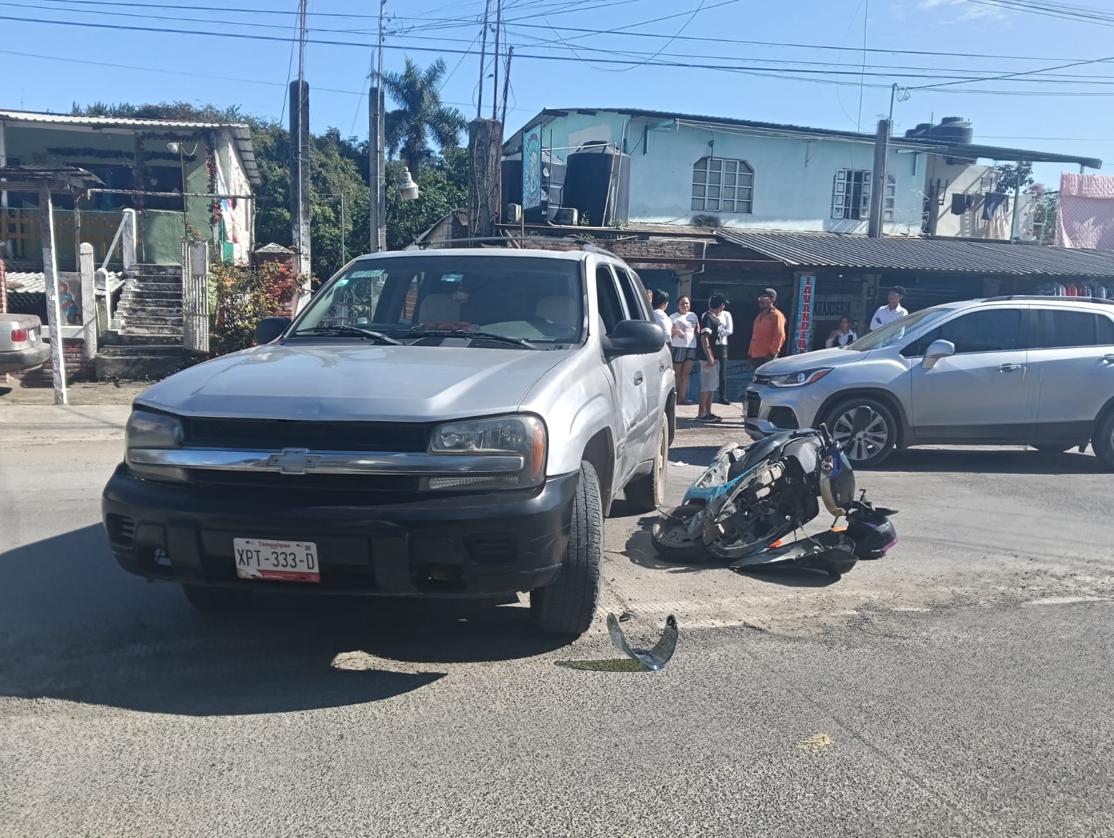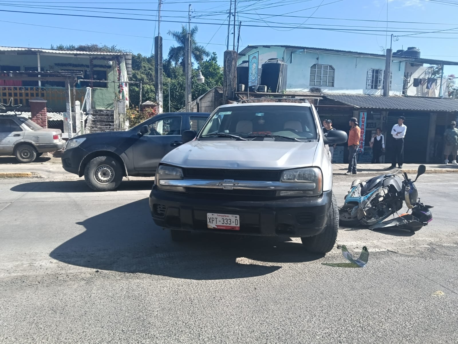 Durante la maniobra, la camioneta impactó a una motocicleta Italika XS125, color azul con negro, modelo dos mil once, que era conducida por Alondra Estefanía «H», de veinticuatro años, vecina de la colonia Vicente Guerrero.