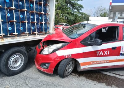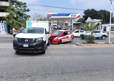 El vehículo que colisionó es un Chevrolet Spark modelo 2017, color blanco con rojo, Taxi 1788 sin placas, conducido por David «M», de 49 años de edad, con domicilio en la colonia Ruiz Cortínez.