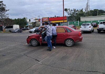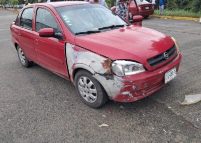 Al intentar realizar una maniobra para dar vuelta a su izquierda sin tomar el carril correspondiente, su unidad fue colisionada por un automóvil Chevrolet Corsa, color rojo, modelo dos mil siete, con placas XYG-080-B, conducido por Antonio «D», de cuarenta y dos años, vecino de la colonia Banderas.