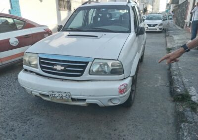 El accidente ocurrió alrededor de las 16:00 horas, sobre la calle Allende, entre Melchor Ocampo y Morelos, donde el conductor Juan Francisco “B”, de 69 años de edad, domiciliado en la colonia Zapote Gordo, manejaba una Chevrolet Tracker, modelo 2008, color blanco, con placas YGG-5849.