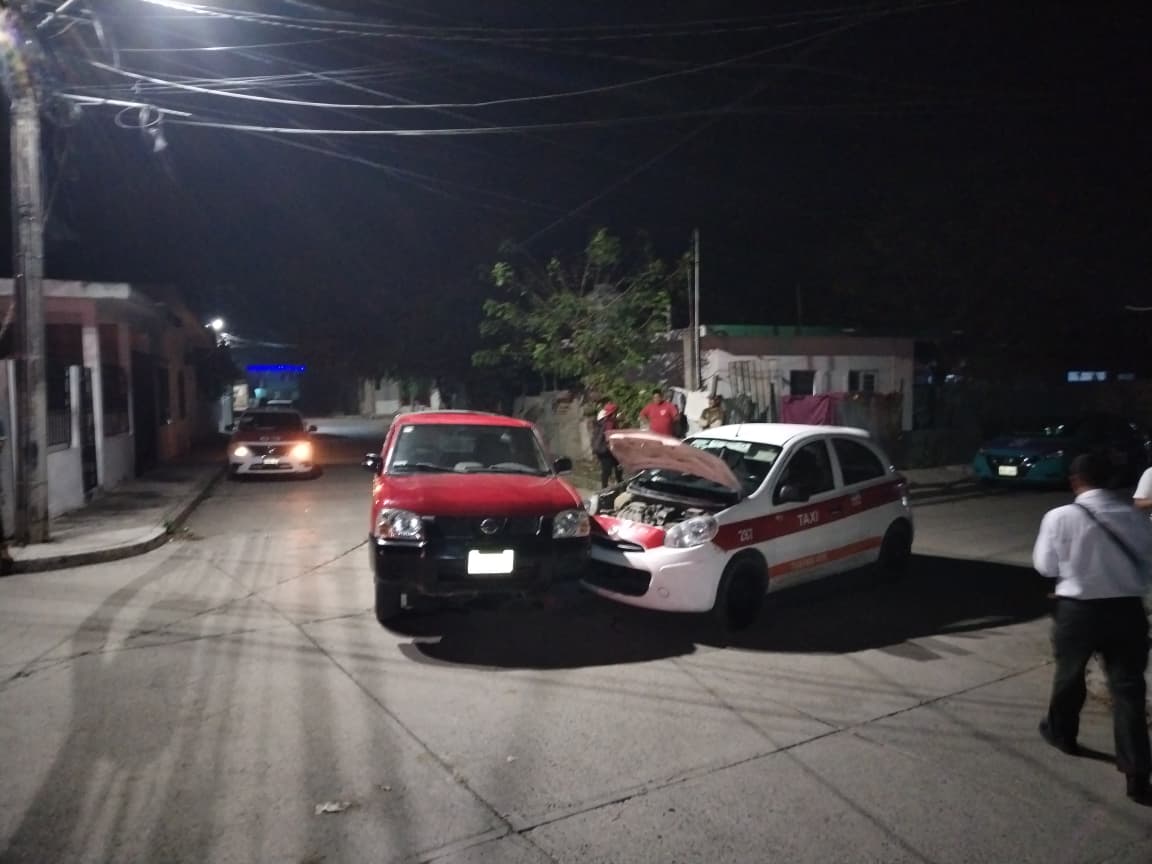 El percance involucró al Taxi #237, conducido por Alfredo “C”, y una camioneta Nissan guiada por Gerardo “M”. De acuerdo con la posición de las unidades y lo observado en las imágenes del lugar, la camioneta habría cortado la circulación al taxi, provocando el impacto.