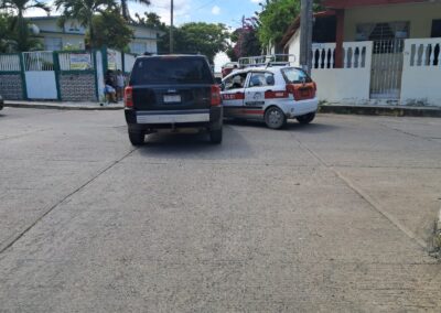 De acuerdo con el parte oficial, alrededor de las 14:00 horas, el ciudadano Julio César, de 60 años, con domicilio en el Infonavit Puerto Pesquero, conducía un taxi Chevrolet Matiz modelo 2007, en colores oficiales blanco con rojo, número económico 1604, sin placas.