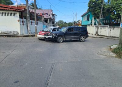 Al invadir un carril de circulación preferente, impactó a una camioneta Chrysler Jeep Patriot, color negro y con placas del Estado YUF467A, que era conducida por Jair de Jesús, de 45 años, vecino del fraccionamiento Lomas del Fovissste.