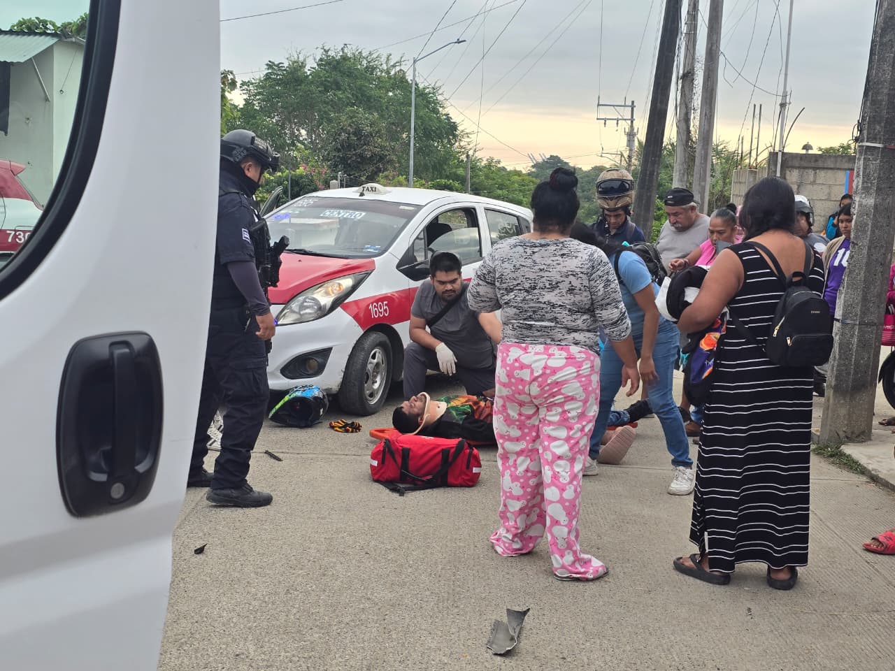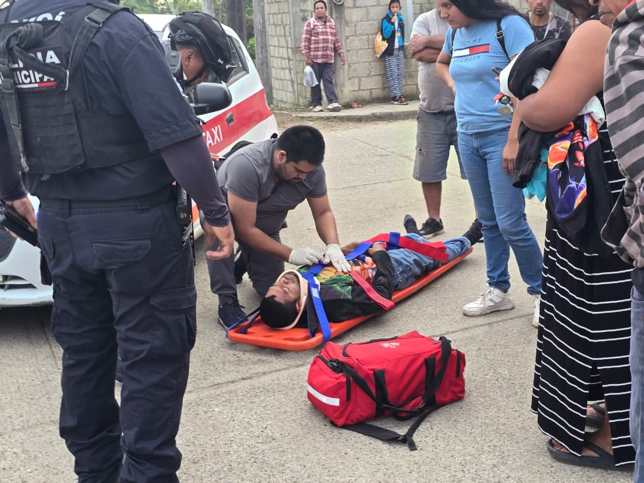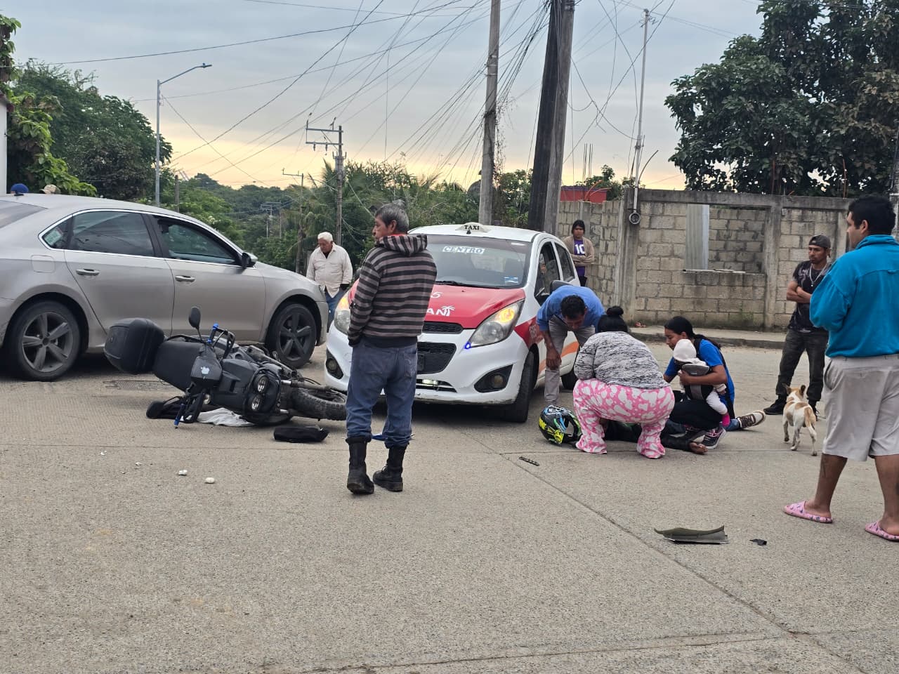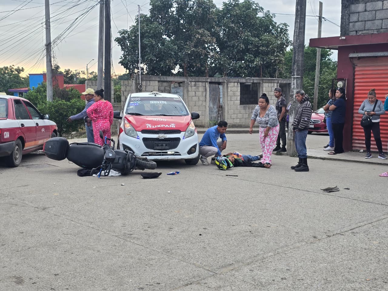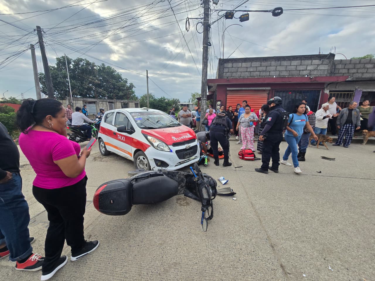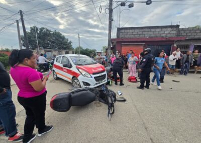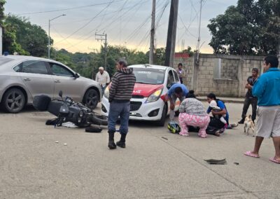 Choque entre taxi y motocicleta deja dos personas lesionadas en la colonia Lázaro Cárdenas