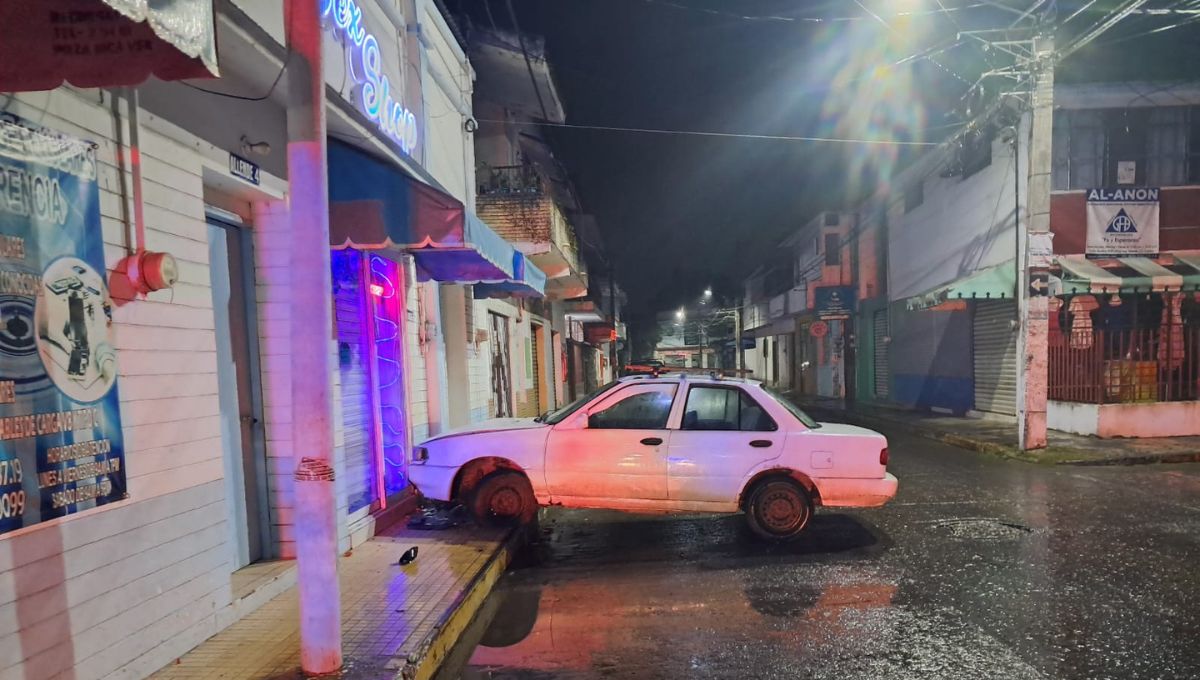 El percance se registró alrededor de las 05:40 horas, en el cruce de las calles Ignacio Allende y José María Morelos, donde quedó abandonado un Nissan Tsuru, color blanco, modelo 2015, con placas YAE-120-C del estado de Veracruz.