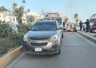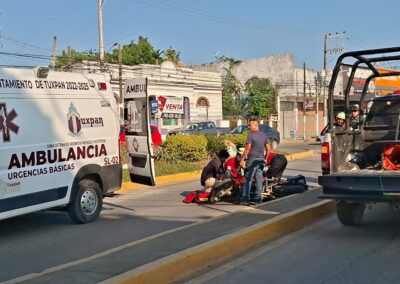 Los hechos sucedieron aproximadamente a las 15:30 horas, debajo del Puente Tuxpan, cuando la camioneta Chevrolet Equinox, modelo 2012, placas YPB168A, conducida por Paulino «Z», de 66 años, vecino de la colonia Adolfo Ruiz Cortines, impactó por detrás a la motocicleta Vento 300, modelo 2024, manejada por Rafael «W», de 63 años, residente de la colonia Las Lomas.