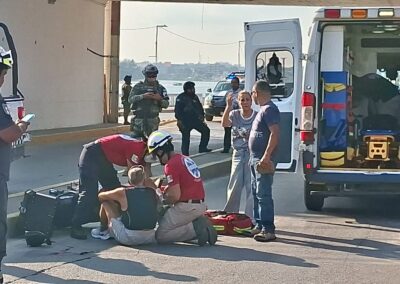 Al lugar arribaron elementos de la Policía Municipal, Policía Estatal y posteriormente Tránsito, así como paramédicos de la ambulancia SUMA de Protección Civil, quienes atendieron y entablillaron al lesionado, trasladándolo al Hospital Civil para su valoración médica.