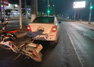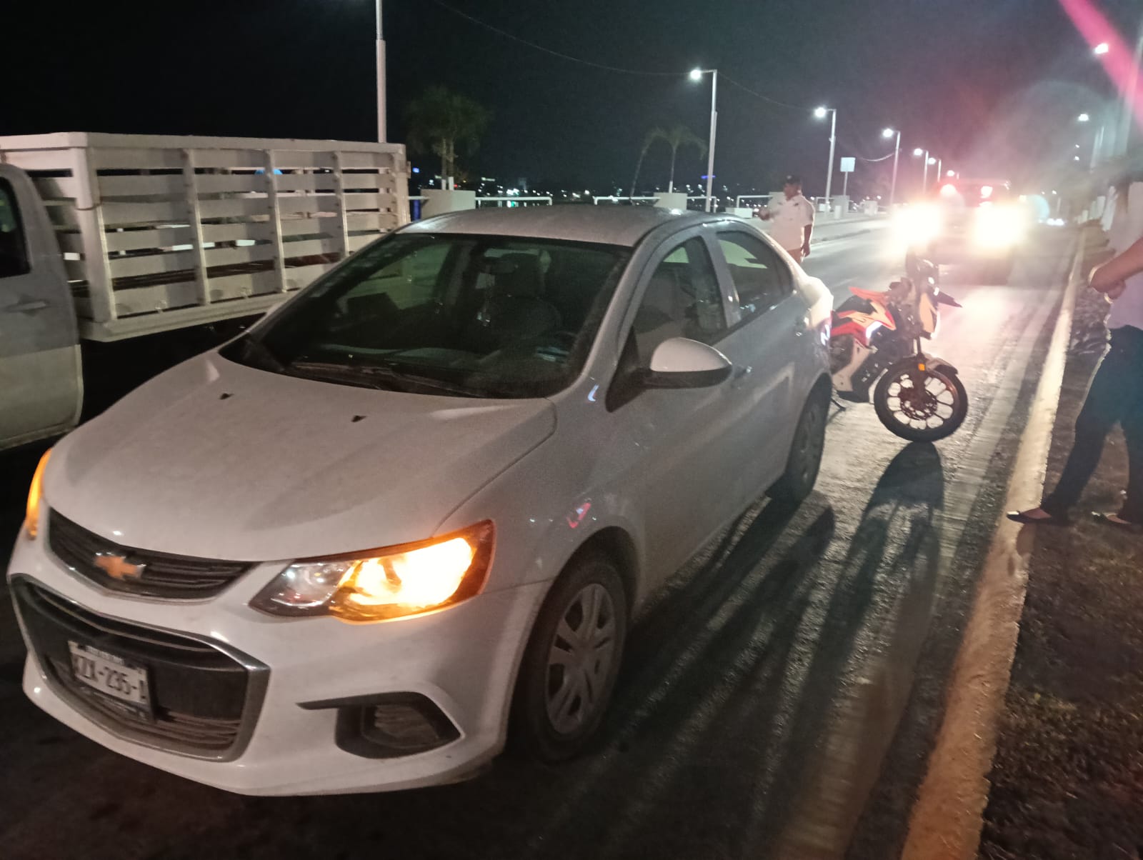 De acuerdo con el reporte de las autoridades, se trató de una motocicleta Vento FALKON 220, modelo 2025, conducida por Noé A., que terminó colisionando con la parte trasera de un Chevrolet Sonic, modelo 2017, tipo sedán, con placas del estado de Veracruz, manejado por una mujer identificada como Angélica R.
