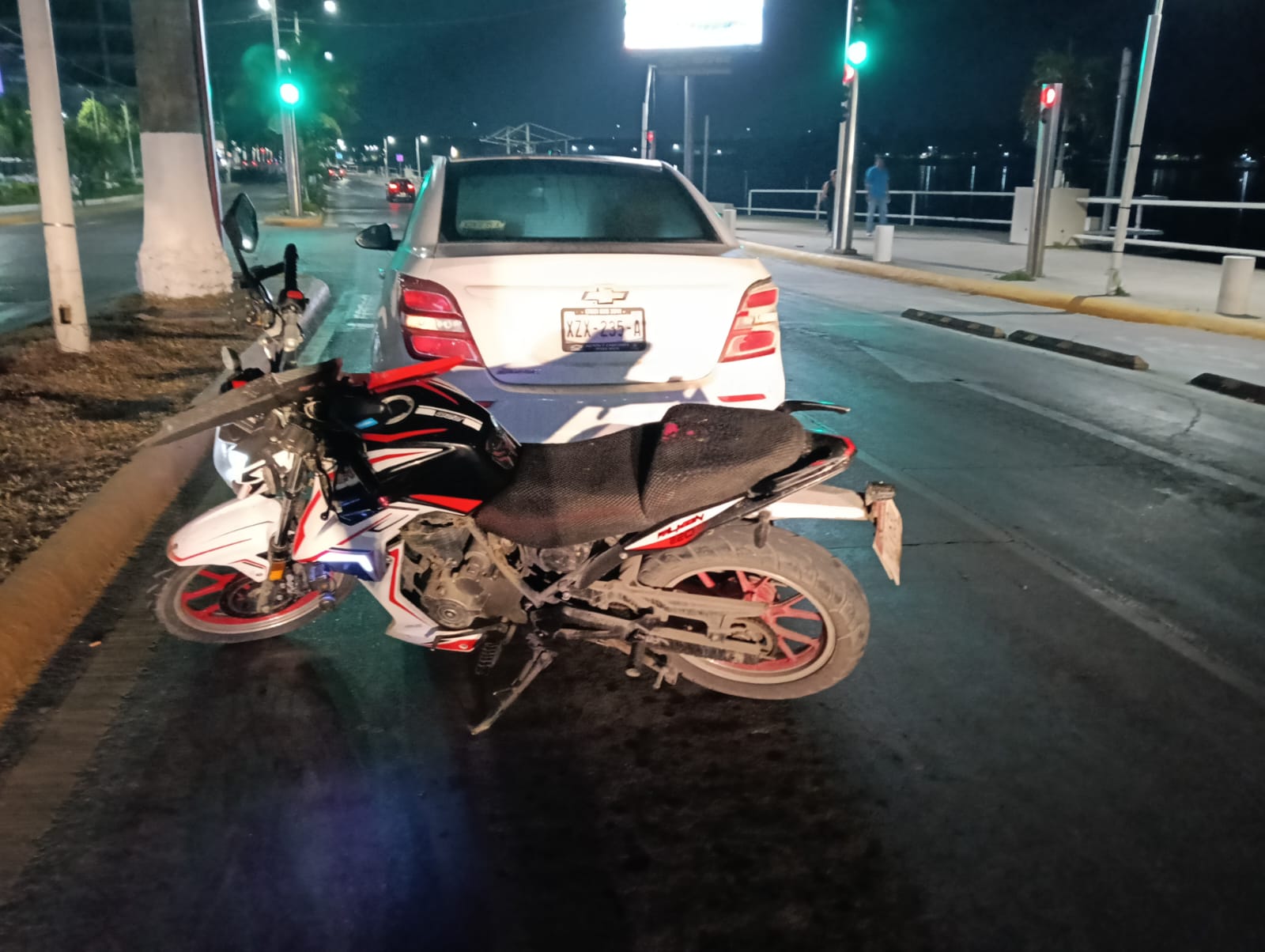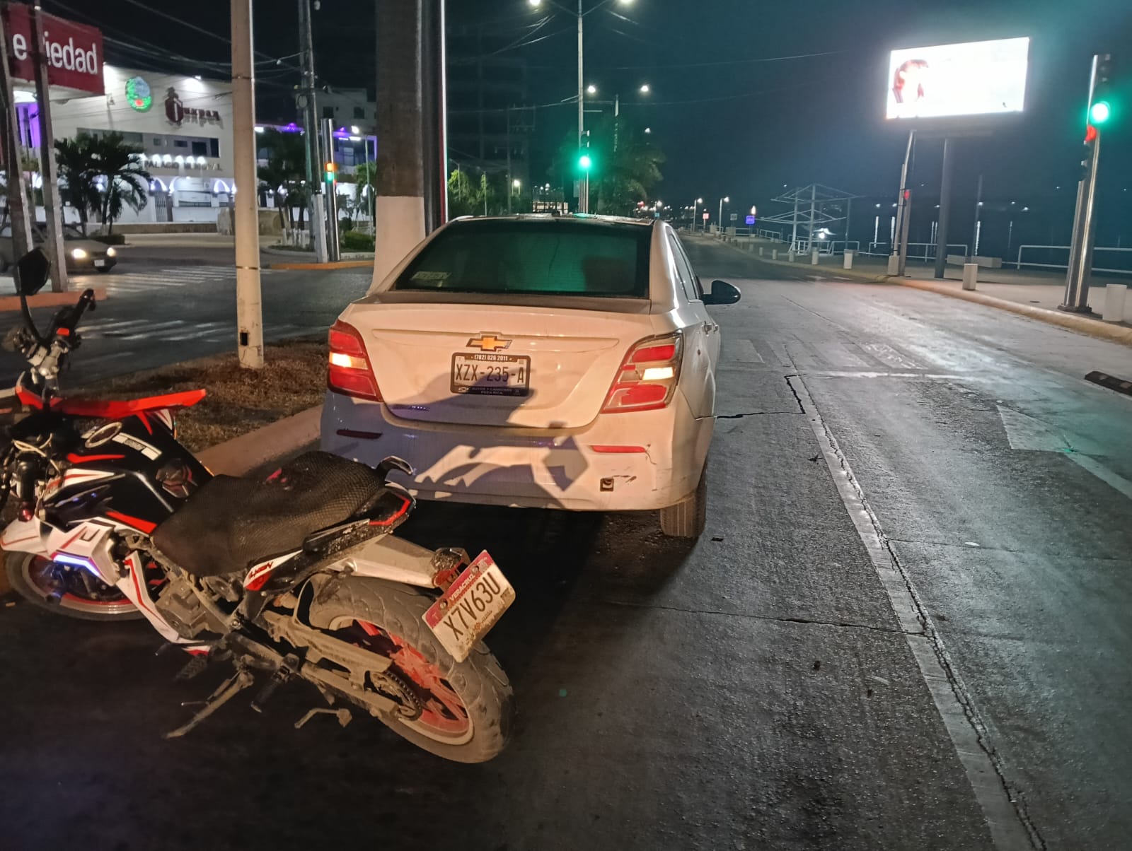 Choque por alcance entre motocicleta y automóvil en el bulevar Reyes Heroles