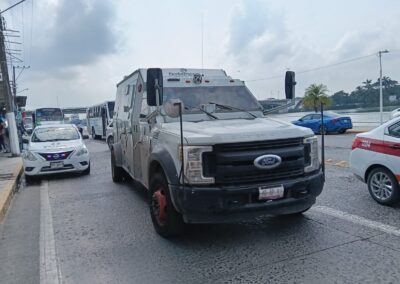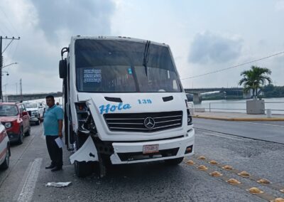 De acuerdo con el parte informativo, el camión número 139 de la línea “Hola”, con placas de Veracruz 573-HY-5, que cubre la ruta hasta Potrero del Llano y Cerro Azul, chocó por alcance contra una unidad blindada Ford SuperDuty perteneciente a la empresa de seguridad privada “Panamericana”, con placas 60-AP-4J.