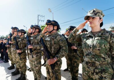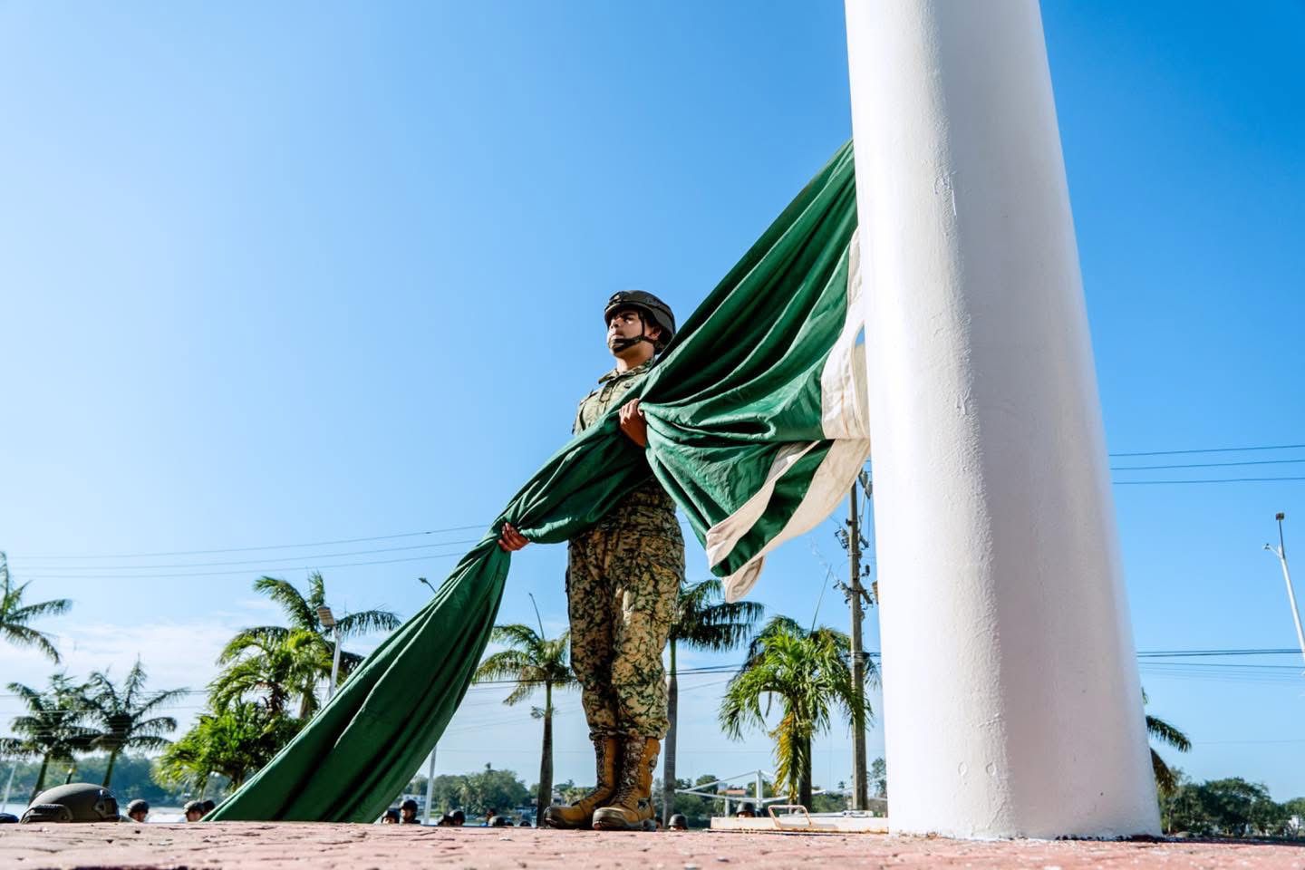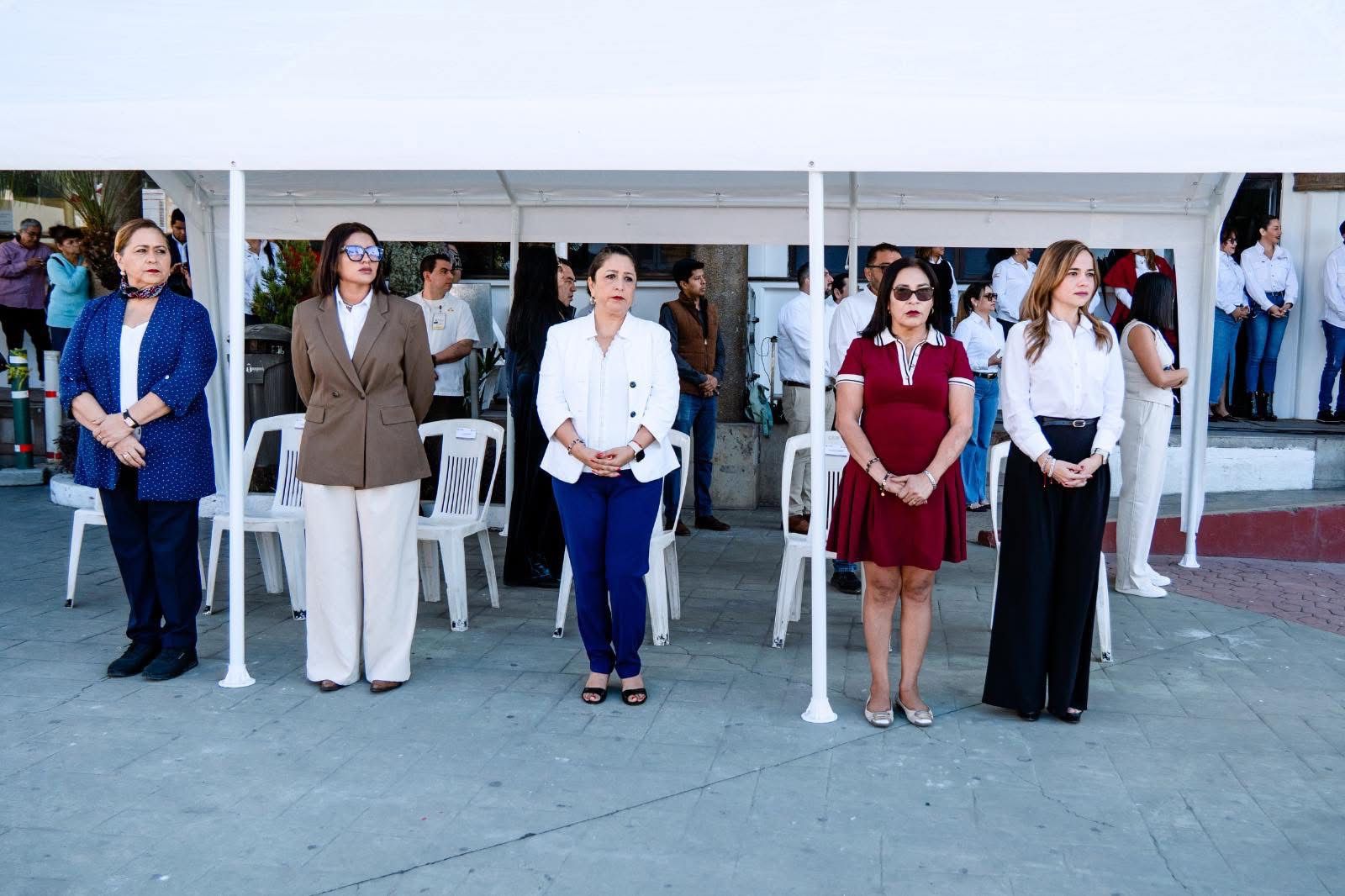 Durante la ceremonia se realizó el izamiento de la Bandera Nacional y la entonación del Himno Nacional Mexicano, además de una remembranza histórica que recordó el significado y la evolución de nuestro lábaro patrio como emblema de identidad, lucha y unidad nacional, a cargo de la Soldado Policía Militar, Alma Tatnay Ledezma Villasana.