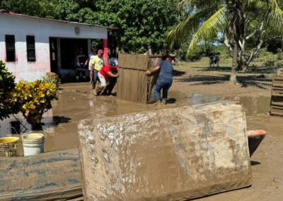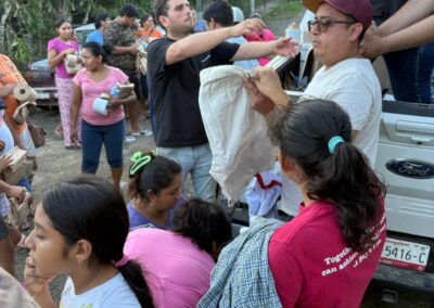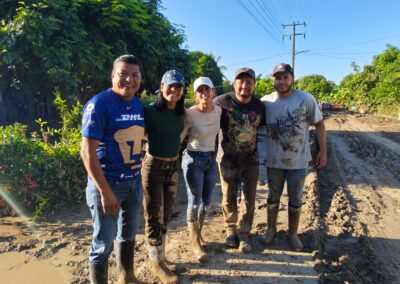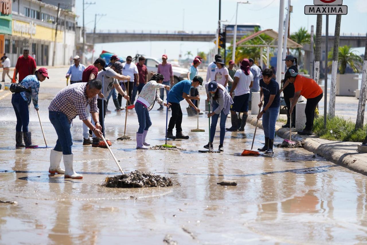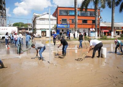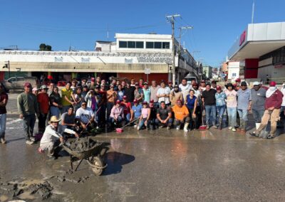De la misma manera, las brigadas médicas y de limpieza continuaron en comunidades afectadas, coordinando esfuerzos. Destacó la labor de René Cortés “El Puma”; la Mtra. Marleth Blanco; Javier Sánchez Balderas y la Dra. Rosy Maranto, en Zapotal; Frijolillo; Juana Moza y la colonia Villa Rosita.