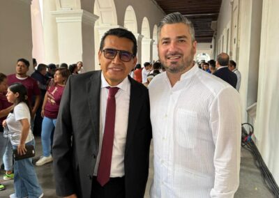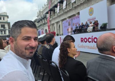 Xalapa, Veracruz.- El diputado local y alcalde electo de Tuxpan, Daniel Cortina Martínez, asistió este domingo 30 de noviembre al Primer Informe de Gobierno de la gobernadora Rocío Nahle García, acto celebrado en Plaza Lerdo, en la capital del estado. Durante el evento, mantuvo un estrecho acercamiento con legisladoras y legisladores del Congreso del Estado, saludando y dialogando con quienes forman parte de la construcción del proyecto transformador en Veracruz.