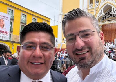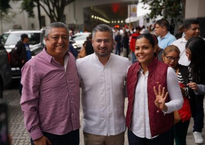 Asimismo, estuvo acompañado por integrantes del equipo que ha caminado con él durante este proceso: su suplente, el MVZ Alejandro Alarcón González; los regidores electos Marleth Blanco Téllez y René Cortés “El Puma”, quienes formarán parte del gobierno entrante encabezado por Cortina; además de Rogerio Nader González, José Armando Huesca Ovando, José Laso de la Vega, Adrián Ornelas y Víctor Nava.