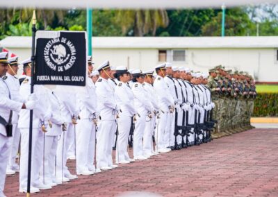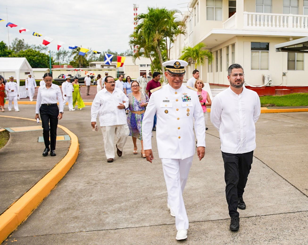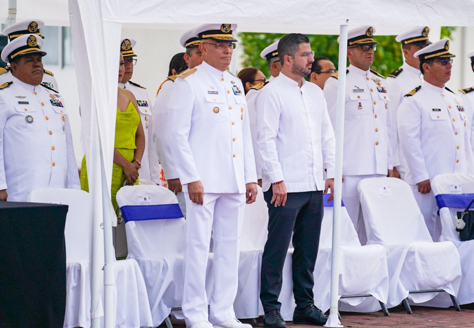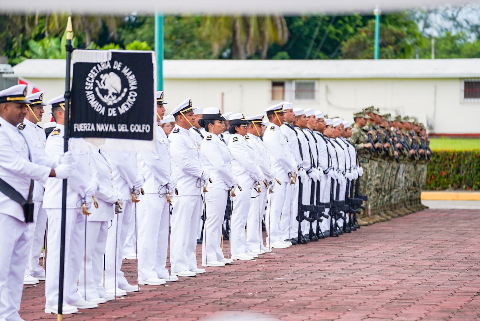 La agenda de actividades del legislador local inició en la explanada de la Base Naval del Golfo, donde acudió como invitado para celebrar junto a autoridades navales, militares y funcionarios de los tres niveles de gobierno la creación el 4 de octubre de 1821 de la Armada de México.