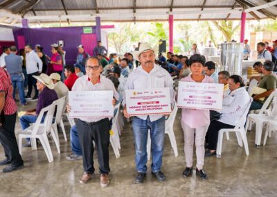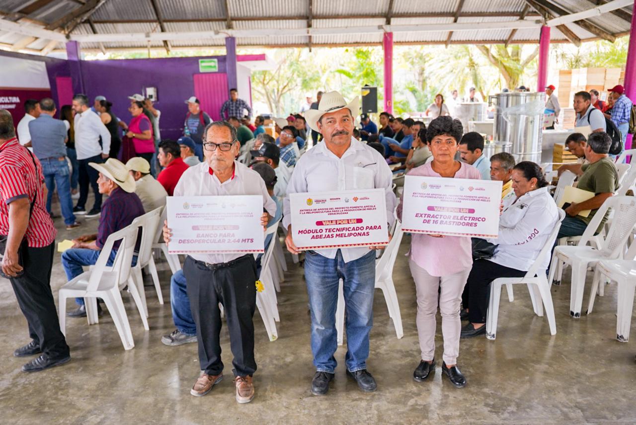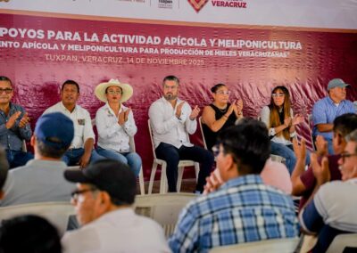 Durante el evento, se otorgaron apoyos a 87 beneficiarios de los municipios de Coyutla, Tihuatlán, Zozocolco, Álamo, Tuxpan, Espinal, Citlaltépetl, Chicontepec, Benito Juárez, Papantla, Gutiérrez Zamora y Tecolutla, como parte del compromiso de fortalecer la productividad y mejorar las condiciones de quienes trabajan en el sector apícola de la región.