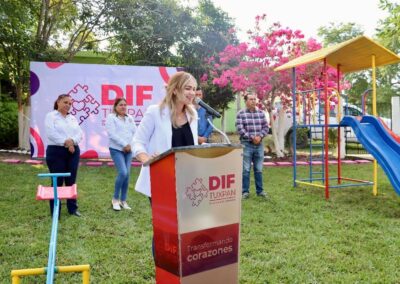 La presidenta del Sistema Municipal para el Desarrollo Integral de la Familia (DIF) Tuxpan, Melba López Gutiérrez inauguró las rehabilitaciones, áreas verdes y de juegos de los Centros de Asistencia Infantil Comunitarios (CAIC) de Sabanillas y Colosio.