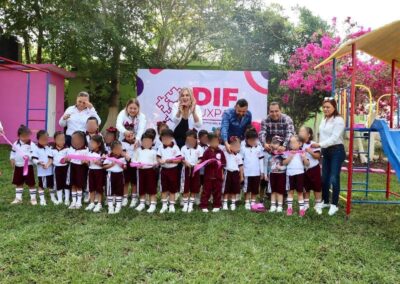 En su discurso, la titular del organismo asistencial informó que, con estas acciones financiadas con ingresos propios, marcan la conclusión de la rehabilitación de los siete CAIC del municipio: DIF, El Retiro, Ojite, Villamar, Baltazar, Sabanillas y Colosio, fortaleciendo los espacios de atención y formación de niñas y niños en edad preescolar.