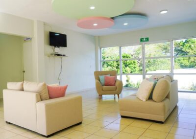 Detalló que, las renovadas instalaciones cuentan con áreas verdes y climatizadas, sala, recibidor, centro de tareas y entretenimiento, oficinas, consultorio médico, cocina, un amplio comedor hasta para 12 niños, juegos nuevos y 2 dormitorios separados, cada una con 6 camas individuales para niñas y niños, baños independientes con regaderas y un área de lavado de ropa.