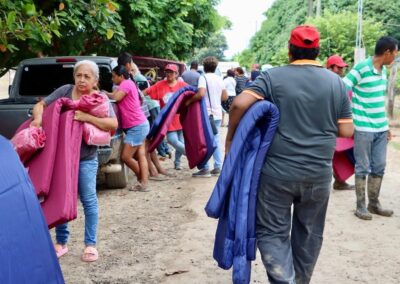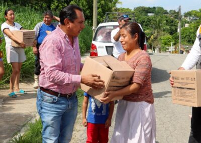 Como parte de dichas acciones, también se proporcionaron despensas y cobijas del programa de Atención Alimentaria a Personas en Situación de Emergencia a familias de la colonia Miguel Hidalgo en Santiago de la Peña, fraccionamiento Framboyanes y de la colonia Federico García Blanco.
