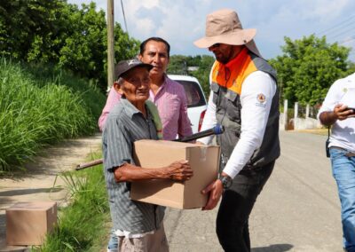 López Gutiérrez informó que durante la semana se visitaron la calle 16 de septiembre y callejón de Las Flores en la colonia Rafael Hernández Ochoa y la calle Rosas Rojas en la colonia Villa Rosita l para la entrega de víveres.