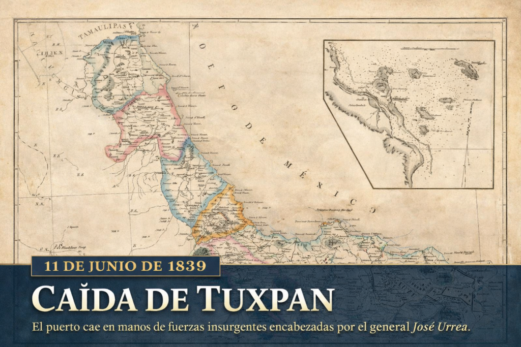 El 11 de junio de 1839 es una fecha clave en la historia del puerto de Tuxpan. Ese día, la ciudad cayó en manos de fuerzas insurgentes, en el contexto de los conflictos políticos y militares que marcaron al México del siglo XIX, particularmente durante el periodo del centralismo y las constantes rebeliones contra el poder establecido.