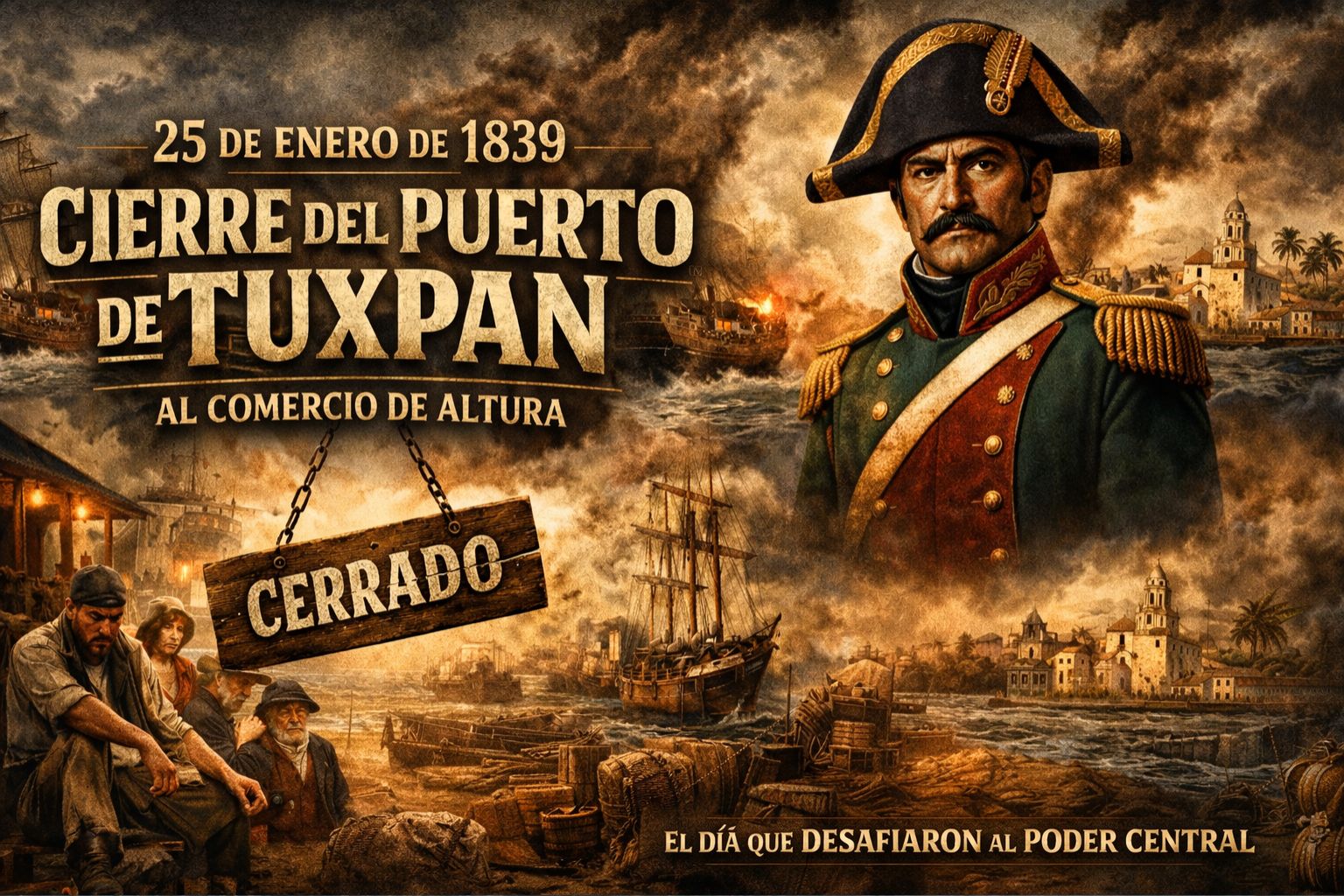 El 25 de enero de 1839, el puerto de Tuxpan vivió uno de los episodios más delicados —y menos recordados— de su historia marítima: el cierre oficial del puerto al comercio de altura, una decisión que marcó un quiebre político, económico y administrativo en la región norte de Veracruz.