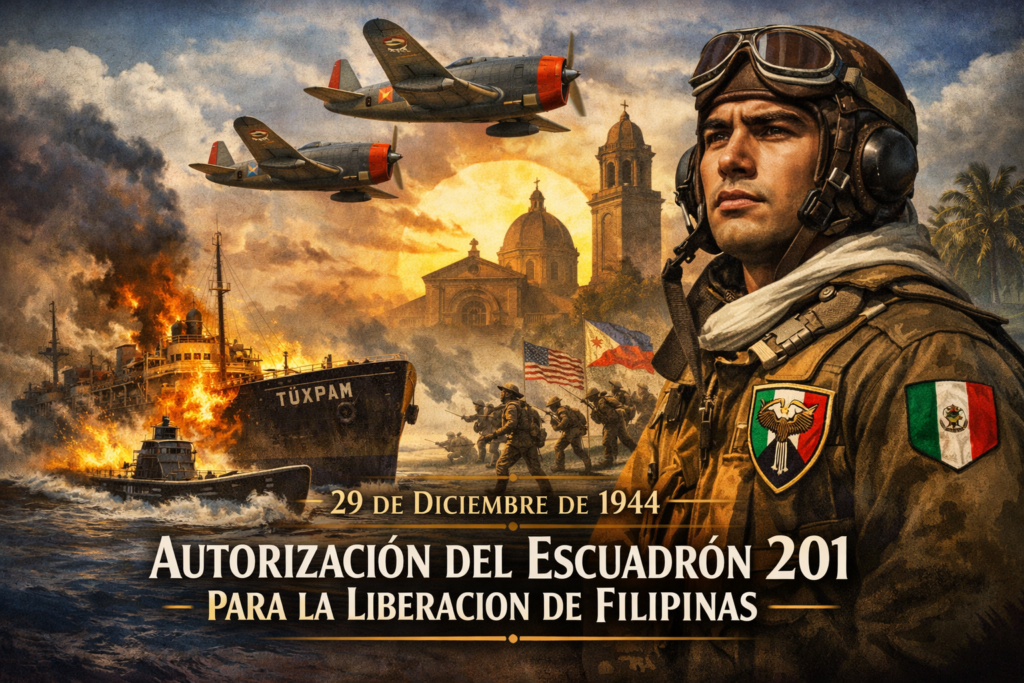 El 29 de diciembre de 1944, el Senado de la República autorizó al presidente Manuel Ávila Camacho el envío de tropas mexicanas a combatir fuera del territorio nacional, formalizando la creación de la Fuerza Aérea Expedicionaria Mexicana (FAEM), cuya unidad de vuelo sería el Escuadrón Aéreo de Pelea 201, recordado como las Águilas Aztecas, pieza clave en las operaciones aliadas para la liberación de Filipinas en la Segunda Guerra Mundial.