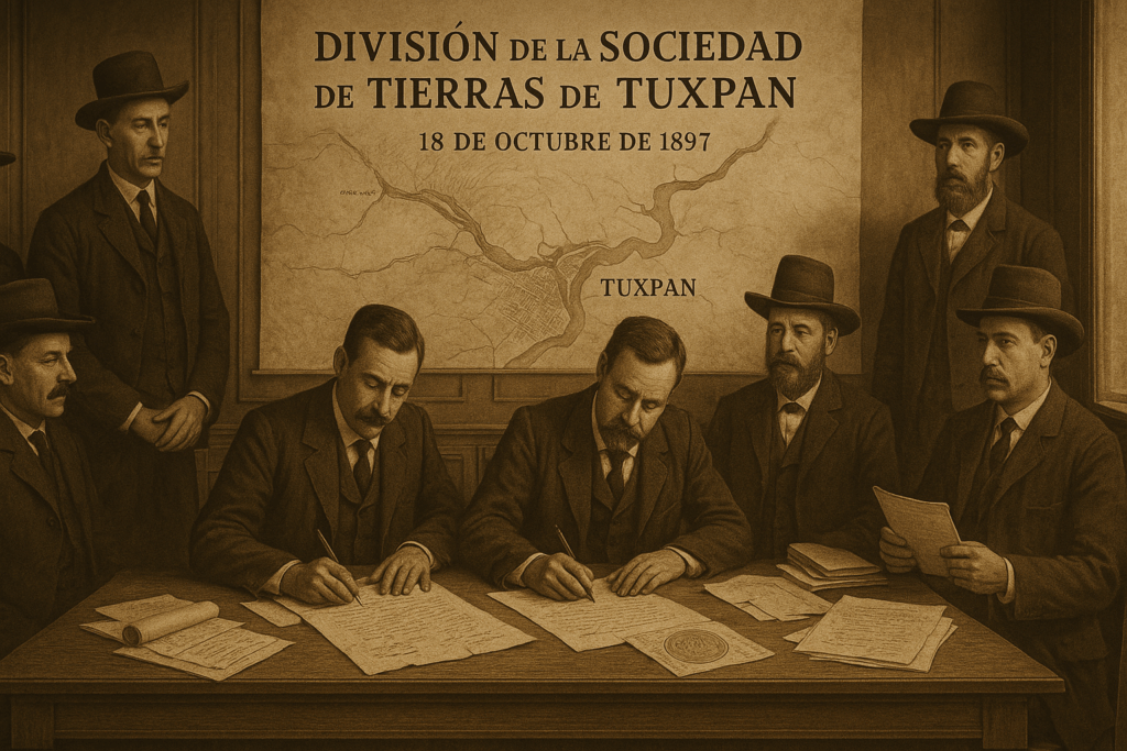 El 18 de octubre de 1897 se consumó la división de la Sociedad de Tierras de Tuxpan, acto con el que se disolvió el condueñazgo colectivo que había administrado por más de medio siglo las antiguas haciendas de La Asunción y Santiago de la Peña.