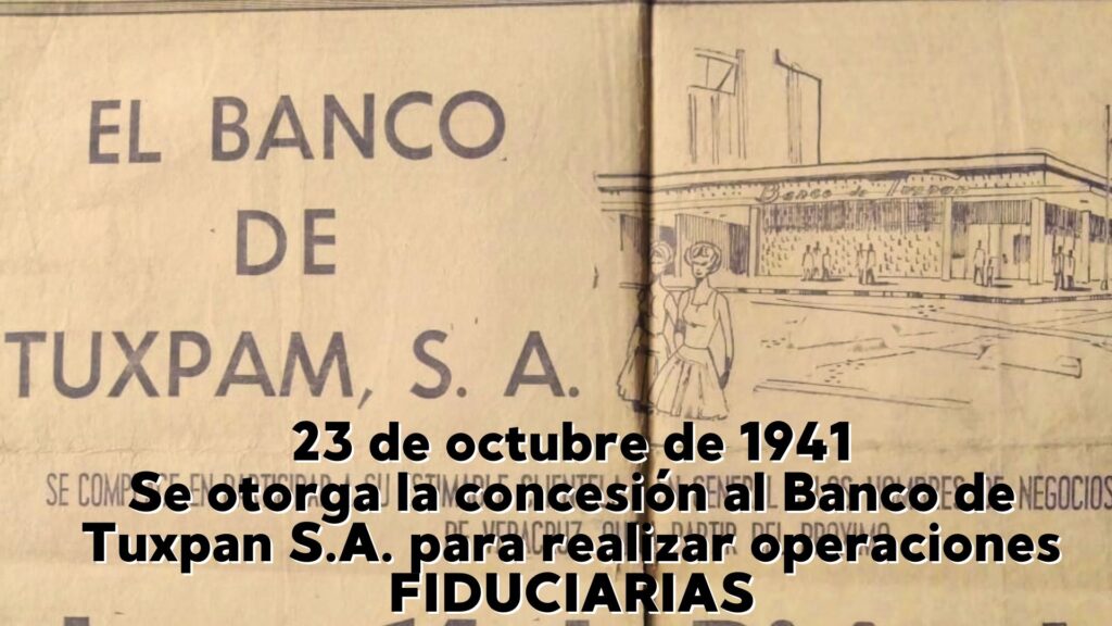 El 23 de octubre de 1941, la Secretaría de Hacienda y Crédito Público del Gobierno Federal otorgó la concesión oficial al Banco de Tuxpan, S.A., institución fundada por empresarios tuxpeños, autorizándola para operar legalmente en los ramos de depósito, ahorro y fiduciarias, conforme a la legislación bancaria vigente de la época.