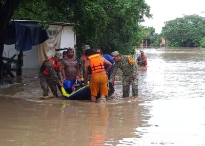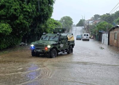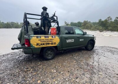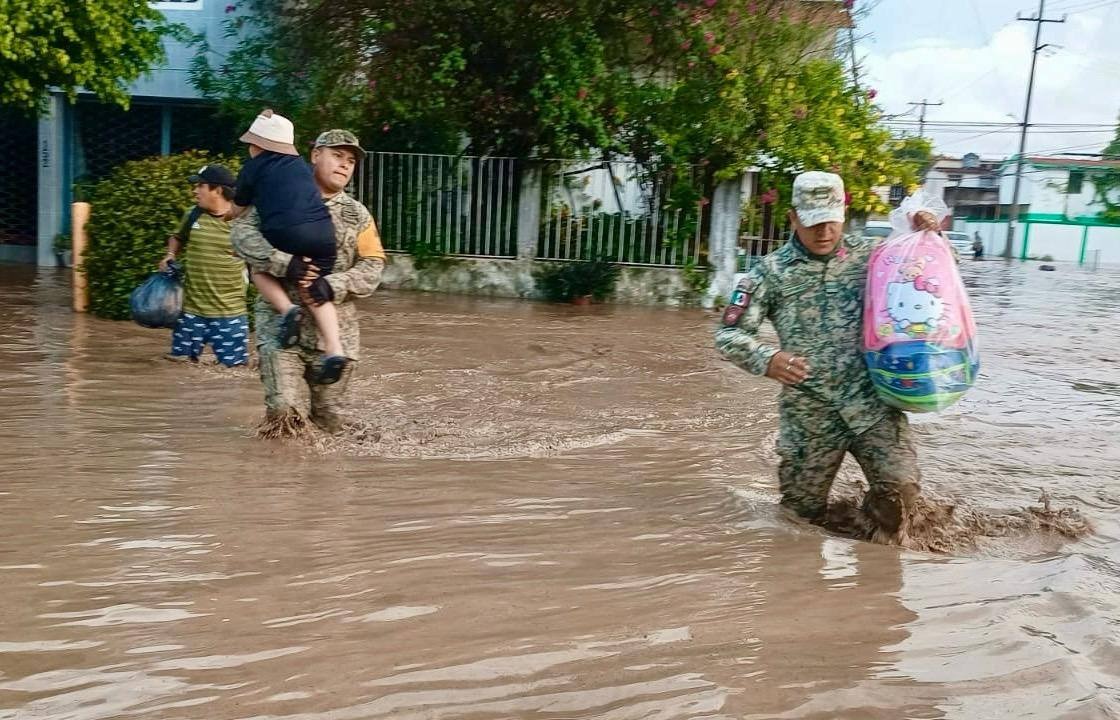 Desde la madrugada del jueves, las fuerzas federales se movilizaron para rescatar personas atrapadas, limpiar caminos bloqueados y evacuar zonas de alto riesgo. Con maquinaria pesada, vehículos todo terreno y equipo especializado, los soldados y guardias nacionales enfrentan ríos desbordados, lodo y corrientes que han arrasado con todo a su paso.