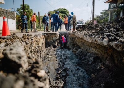 Durante la visita, el alcalde constató la dimensión de la cavidad y verificó los trabajos que ya se encuentran en proceso, los cuales incluyen la reparación de fuga de agua, desazolve, labores de bacheo y la conexión de una red hidráulica, con el objetivo de restablecer el suministro de agua y atender de manera integral las afectaciones.