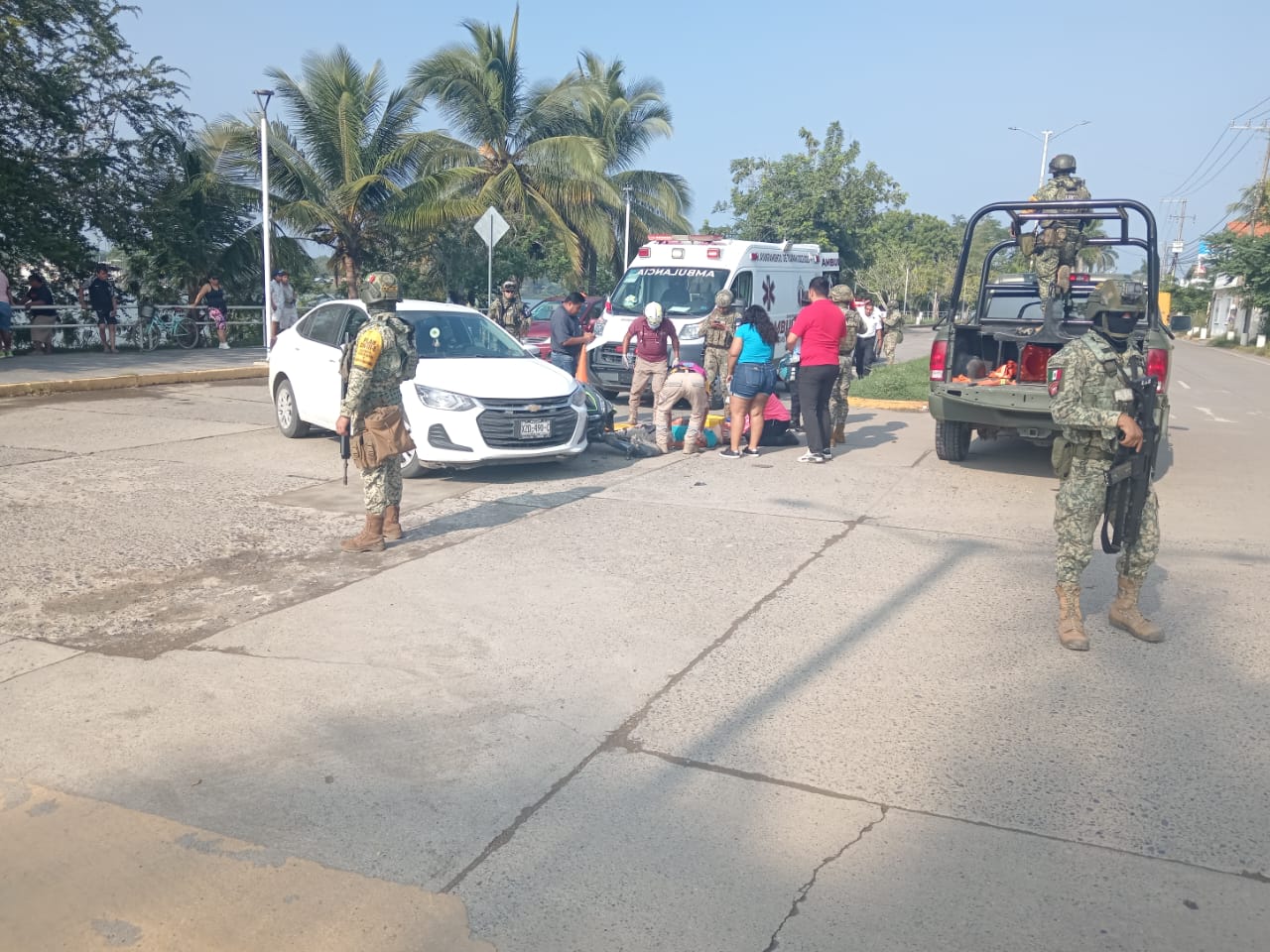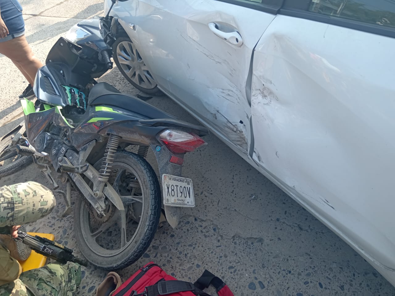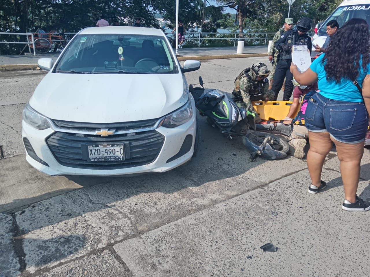 Del accidente tomó conocimiento la Policía Ministerial, quien arribó al sitio a bordo de una unidad Chevrolet Onix, color blanco, modelo 2023, con placas YRT-433-B del estado de Veracruz, acompañado de dos elementos más.
