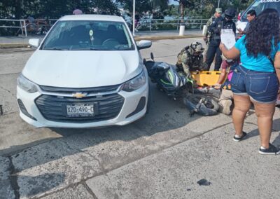Tras el impacto, el joven motociclista resultó lesionado y fue trasladado al Hospital Bienestar por paramédicos de la ambulancia SUMA de Protección Civil, donde recibió atención médica para su valoración.
