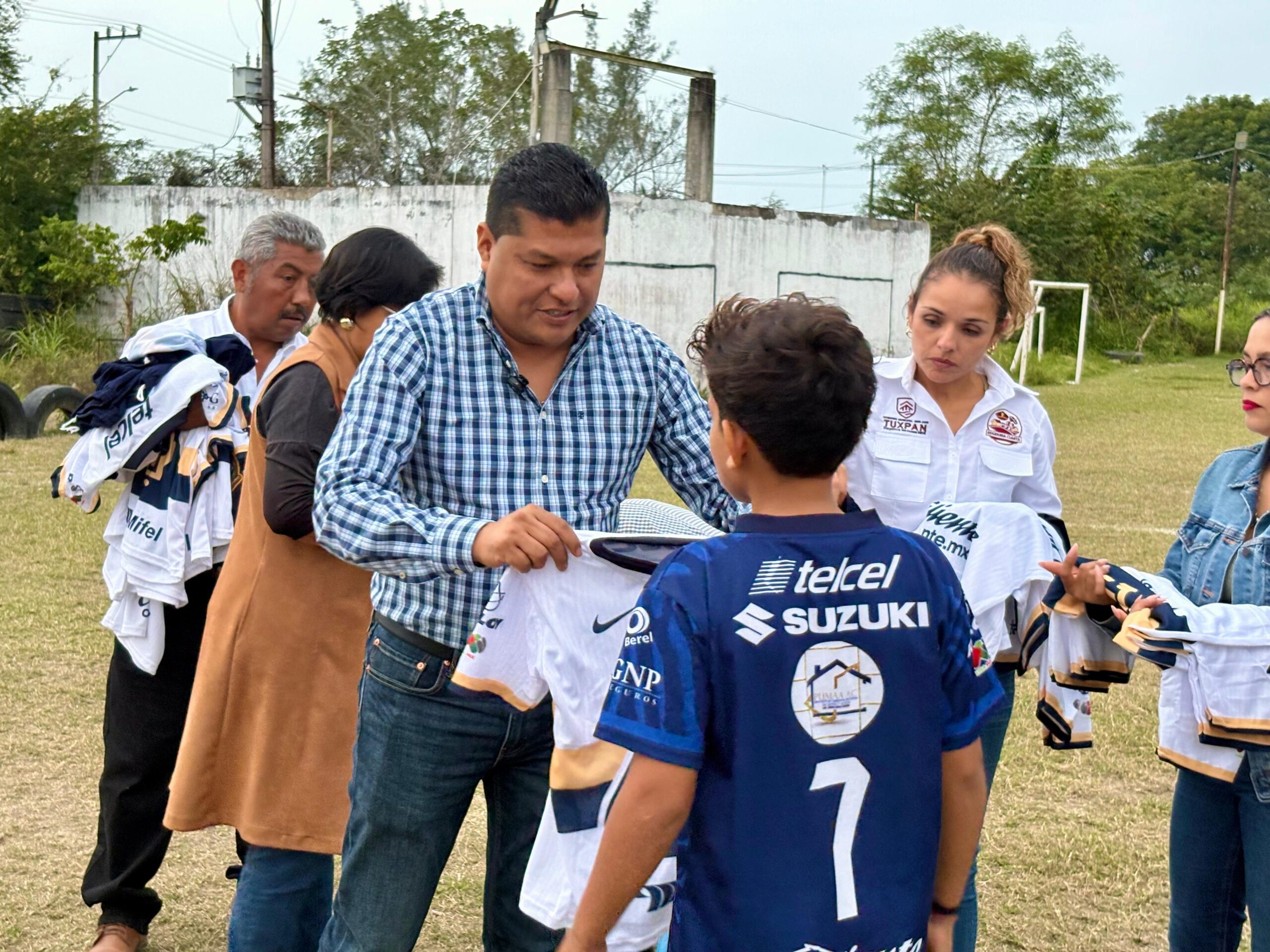 Tuxpan, Veracruz | El día de ayer, el Lic. René Cruz Cortés, Regidor Cuarto del ayuntamiento de Tuxpan, realizó la entrega de uniformes al equipo “DC Guzmán” en sus categorías Sub 9 y Sub 11, quienes ahora portarán la nueva jersey de los PUMAS de la Universidad de cara al próximo torneo que disputarán en la COMUDE.